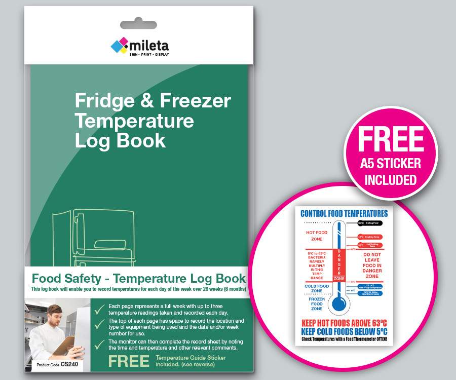 Included within this pack is an A5 Control Food Temperatures Sticker, to assist you while completing the Log Book.