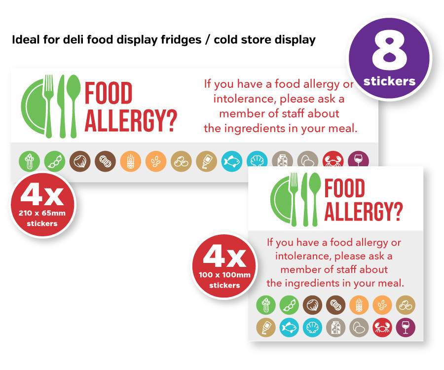 Perfect for displaying around counters, bars, ordering tills, buffets, deli food displays fridges, cold store displays, ice cream stands etc to remind customers to ask about the ingredients in dishes if they have any allergies.