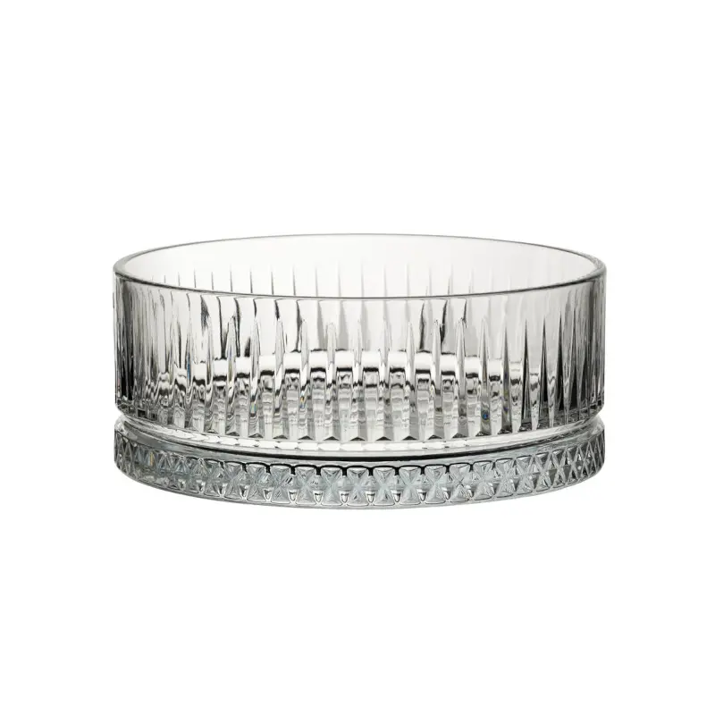The UTOPIA Elysia Bowl adds a touch of sophistication to any service. With its radiant cut-glass design and shimmering vertical lines, this piece reflects light beautifully. This evokes the brilliance of cut crystal while maintaining the durability of machine-made glass.