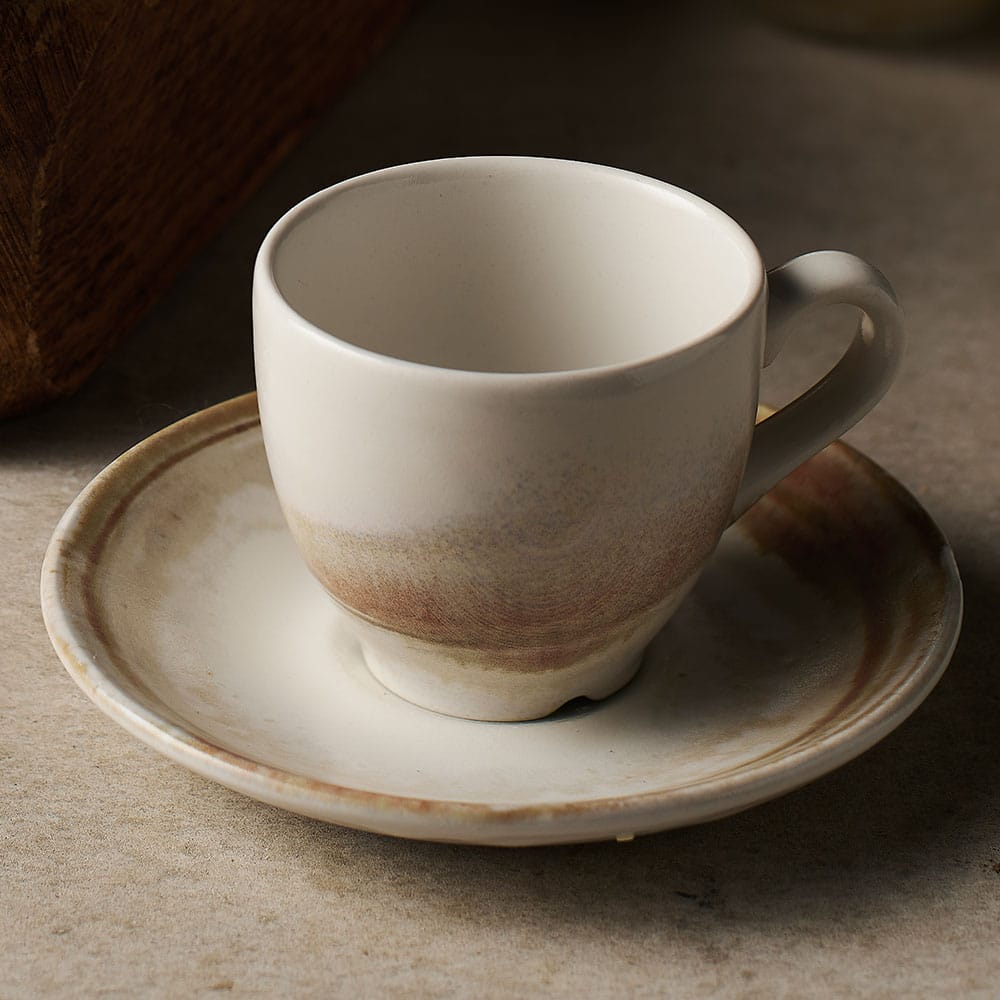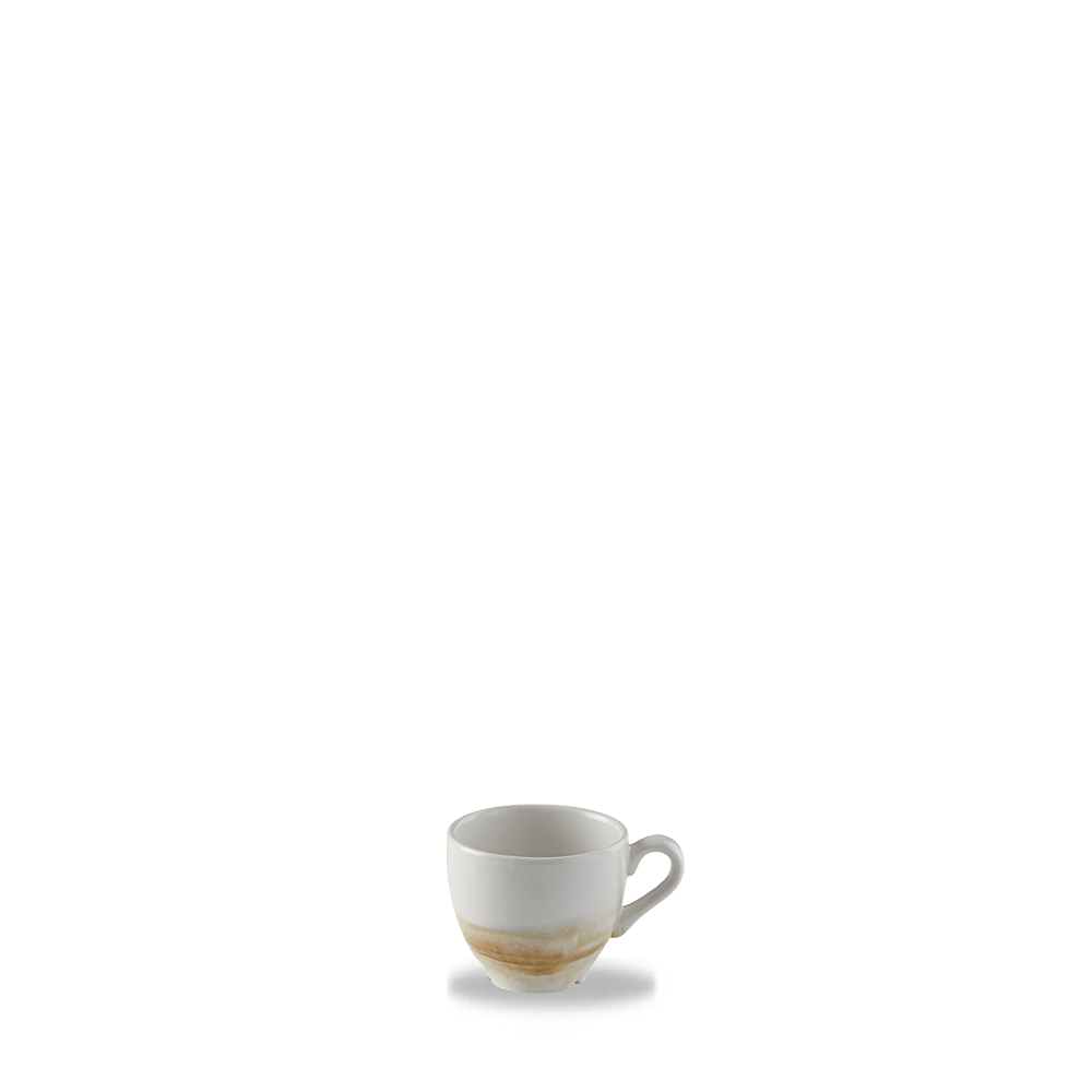 The Finca Sandstone Organic 10cl Espresso Cup features a multi-tonal print that mimics worn textures and is finished in a semi-matte, hand dipped glaze.