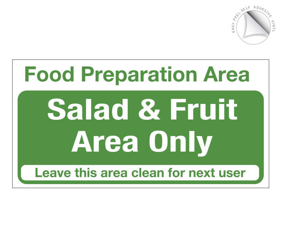 Make catering staff aware of the correct areas for food preparation. Food preparation for salad and fruit only.