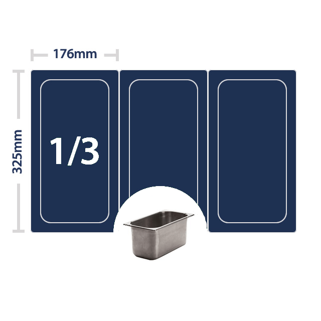 This size of liner fits 1/3 Gastronorm Pans popular on bain-marie buffet stations and countertop prep fridges.